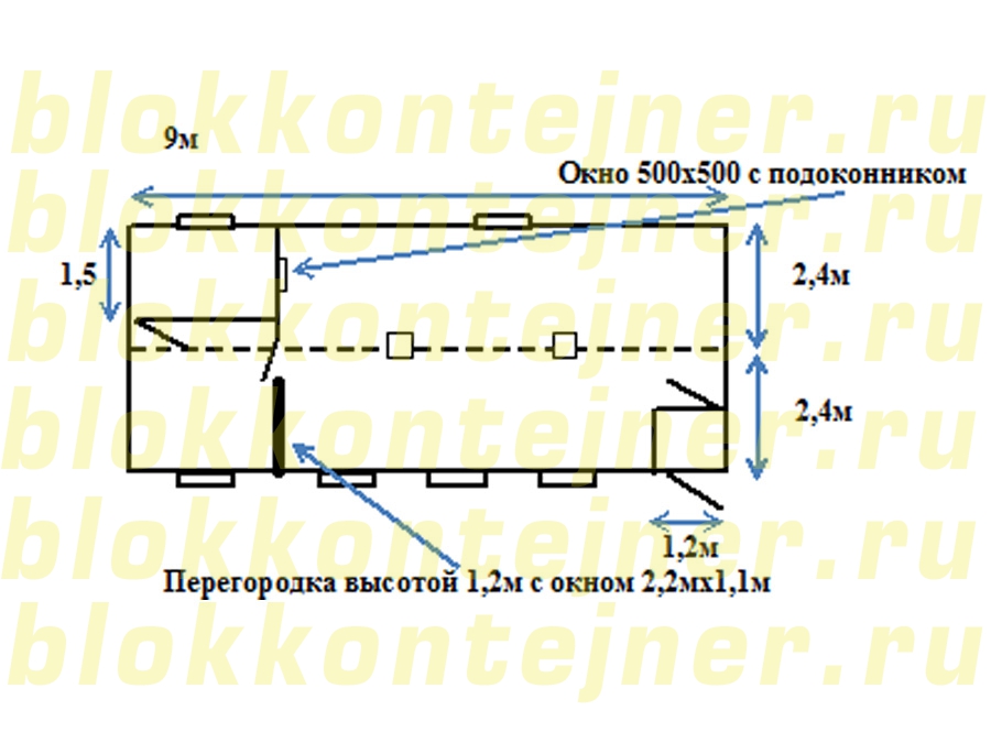Модульное здание -  9,0 *4,8*2,5м  состоит из 2 шт. Блок-Контейнеров.